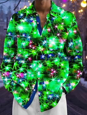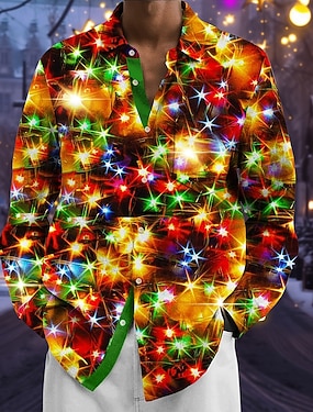 Noël Homme Paillettes scintillantes Eclairage de Noël Chemise Chemise en satin Chemise habillée manche longue Mode Décontractée Extérieur Soirée Fête Printemps Automne Col Rabattu Impression 3D