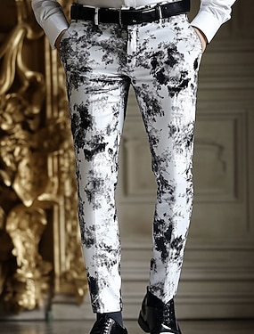 Homme Tie Dye pantalon de costume Pantalon Taille médiale Vêtement décontracté Extérieur Vacances Vêtement de rue Avec poches Coupe Cintrée Devant plat Eté Printemps 3D effet Blanche