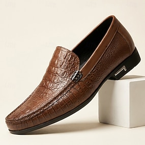 Mocassins en similicuir marron à motif crocodile pour hommes - chaussures habillées élégantes à enfiler pour les occasions formelles