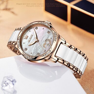 olevs femmes montre mécanique créative minimaliste mode décontracté analogique montre-bracelet automatique calendrier lumineux étanche montre en céramique pour les femmes cadeau femmes montres
