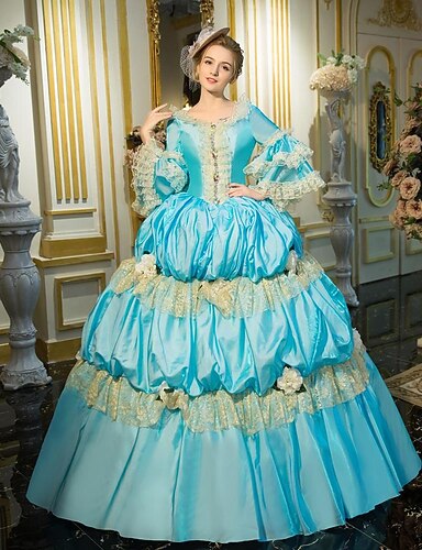 Rococo Victorienne Médiéval Robe Bal Masqué Robe de Bal Grande taille Normal Personnalisée Gigot / Ballon Dentelle Halloween Robe de bal Déguisement Femmes Soirée Bal de promo Carnaval de Venise Robe