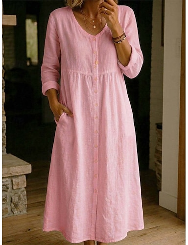 Femmes Robe Midi Robe trapèze Robe d'été Occasionnel Quotidien Coupe Ample Uni Manche 3/4 Col ras du cou Bleu Jaune Rose Claire Fuchsia Été Printemps