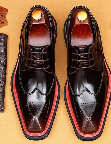 Chaussures habillées pour homme en similicuir marron, style brogue classique à lacets, idéales pour les mariages et les occasions formelles.