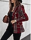 blazer Femme du quotidien Sortie Elégant Imprimer Normal Manteau Rose Claire Chameau Bleu poussiéreux Hiver Automne Double Boutonnage Revers Cranté Standard S M L XL XXL / Chaud / Tartan