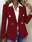 Femmes Blazer Confortable Respirant Avec Poches Occasionnel Uni Bureau Rue Occasionnel Tenue quotidienne Simple Boutonnage Régulier Col Rabattu Coupe régulière manche longue Vêtements d'extérieur Vin