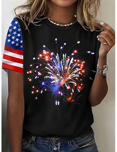 Jour de l'Indépendance Américaine Femmes T-shirt Graphique Drapeau Américain ancien Élégant Classique Manche Courte Col ras du cou Hauts Réguliers Quotidien Week-end Imprimé Noir Blanche Été Printemps