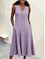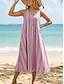 Femmes Robe Midi Robe en coton et lin Moderne Quotidien Vacances Sortir Coupe Ample Rayé Sans manches Col en V Bleu Noir Rose Claire Violet Été Printemps