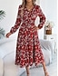 Femmes Robe Midi Robe trapèze Occasionnel Quotidien Coupe régulière Fleuri Graphique manche longue Col en V Rose Claire Vin bleu marine Été Printemps Automne