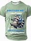 Vous ne m'aimez pas ? Je m'en fiche ! Il fait beau aujourd'hui dans mon quartier. T-shirt homme vert sauge à manches courtes avec un motif raton laveur rigolo. Tailles : S, M, L, XL, XXL, XXXL.