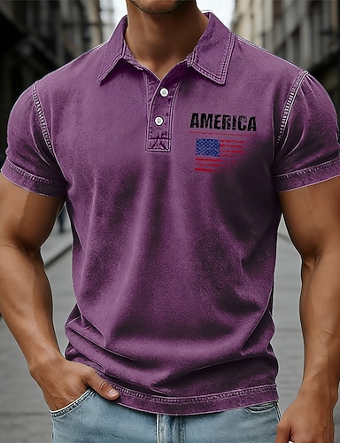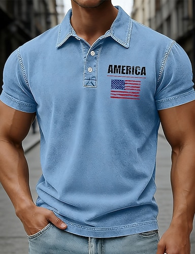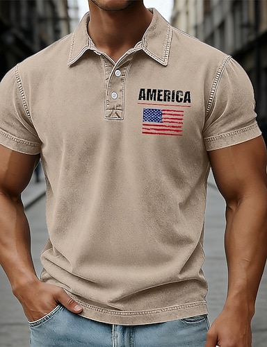 4 juillet 2026, 250e anniversaire Homme Drapeau Américain Polo Chemise délavée à l'acide 100% Coton Manche Courte Polos Chemises à Col Occasionnel Extérieur Fête Impression 3D Boutons Printemps & Été