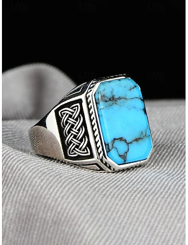 Bague vintage bohème pour homme en alliage turquoise, plusieurs tailles, bijou tendance pour les vacances à la plage, les voyages et le quotidien.