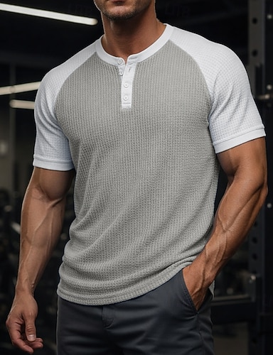 Homme Tee-shirt Gaufre T-shirt Manche Courte Couleur Unie Mode Designer Occasionnel Bloc de Couleur Manche raglan Henley Occasionnel Quotidien Extérieur Été Printemps Toutes saisons Vert Claire Gris