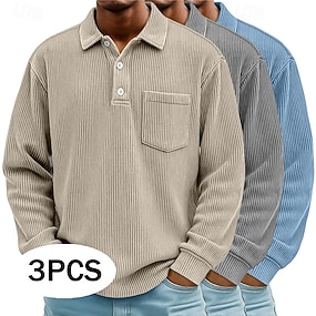 Lot de 3 polos en velours côtelé pour homme, style décontracté, sport, revers, manches longues, mode, blocs de couleurs, automne/printemps &automne toutes saisons coupe régulière