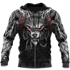 Homme Impressions Graphiques Viking Sweat à capuche Sweats à capuche Sweatshirt Streetwear Designer Basique Occasionnel manche longue À capuche Quotidien Sports Gris Imprimé Printemps & Automne
