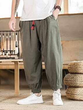 Homme Foi Pantalons en Lin Pantalons Pantalons Amples Taille Moyenne ancien Extérieur Tenue quotidienne Vêtements de rue Automne & Hiver Blanche Vert Kaki