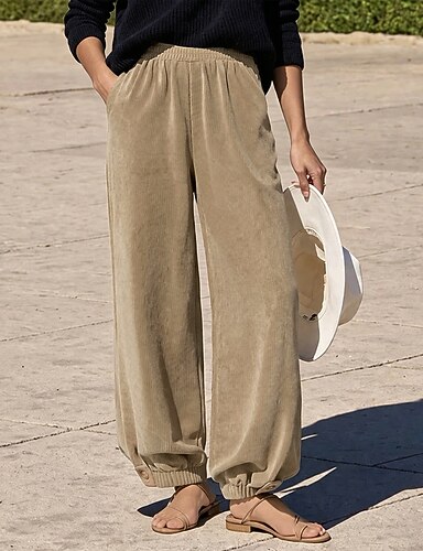 Femmes Pantalons Pantalon en velours côtelé Pantalons Amples Pantalon décontracté Vacances Mode Streetwear Longueur complète Taille haute Uni Avec Poches in in france they say Pontalon wide leg