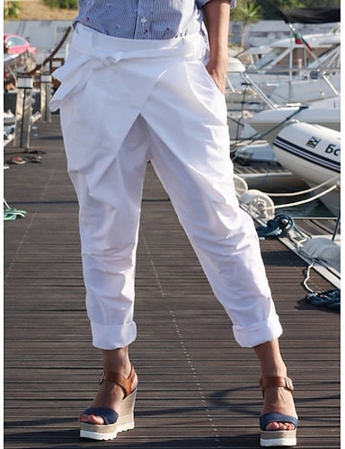 Femmes Pantalons Pantalon d'été Pantalon décontracté Vacances ancien Mode Longueur complète Taille haute Uni Cordon de serrage Avec Poches in in france they say Pontalon wide leg Confort Doux