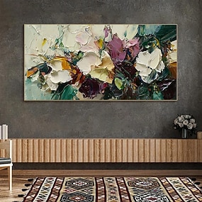 peinture à l'huile faite à la main peinte à la main horizontale abstraite 3D couteau à palette de couleurs floral / botanique moderne toile roulée (sans cadre)