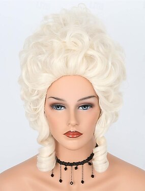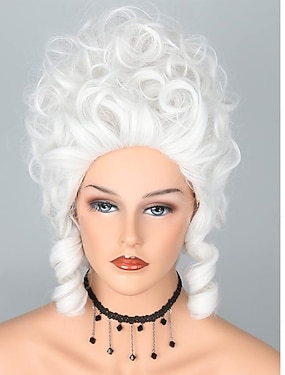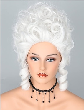 Perruque Années 20 Cosplay Perruque Synthétique Perruque Cosplay Marie Antoinette Bouclée 18ème Siècle Perruque Mi-Longue Cheveux Synthétiques Blanc Femme Perruques Halloween Blanches de Californie