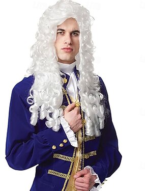Perruque de juge colonial pour hommes Perruque poudrée longue ondulée Wig costume Washington Perruque drôle Carnaval Cosplay Perruques d'Halloween