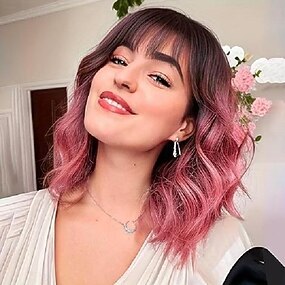 Perruque avec frange pour femmes bob ondulé synthétique avec cheveux bouclés naturels mi-longs résistants à la chaleur Halloween soirée cosplay
