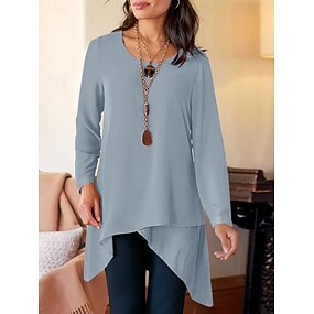 Femmes Chemisier A Volants Couleur Unie Élégant Occasionnel manche longue Col ras du cou Hauts Longs Quotidien Bleu Noir Kaki Printemps Automne