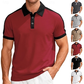 Homme Polo Chemise de golf Occasionnel Vacances Revers Manche Courte Mode Moderne Bloc de Couleur Bloc de Couleur Boutons Été Printemps Coupe régulière Noir Blanche Vin Kaki Gris Claire Gris foncé