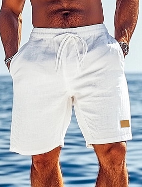 Homme Shorts Shorts en Lin Shorts d'été Shorts de plage Cordon de serrage Taille Élastique Uni Confort Respirant Longueur Genou Quotidien Extérieur Plage Vacances Mode Noir Blanche Non Elastique