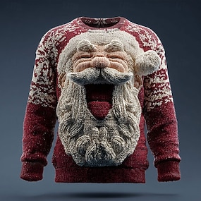 Pull de Noël moche Homme Père Noël Imprimé Pull Tricots Col Rond Occasionnel Vacances Quotidien Garder au chaud manche longue Printemps Automne Hiver Rouge Violet Vert
