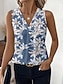Femmes Débardeur Fleuri Graphique Élégant ancien Tropical Sans manches Col en V Hauts Réguliers Quotidien Bleu Blanche Été Printemps