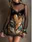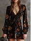 Femmes Mini Robe Robe Décontractée Robe Fleurie Élégant Mode Moderne Extérieur Vacances Soirée Coupe régulière Paisley manche longue Col en V Noir Printemps Automne