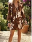Femmes Mini Robe Robe bohème Robe Fleurie Robe Imprimée Robe occidentale Classique Moderne Quotidien Extérieur Vacances Coupe régulière Fleur Sans manches Col en V Kaki Été
