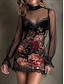 Femmes Mini Robe Robe Décontractée Robe Fleurie Élégant Mode Moderne Extérieur Vacances Sortir Coupe régulière Fleuri Manche Courte Col en V Noir Printemps Automne