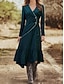 Femmes Robe Longue Maxi Robe Robe Décontractée Robe Maxi Élégant Mode Moderne Quotidien Vacances Sortir Coupe régulière Uni manche longue Col en V Vert Printemps Automne
