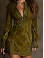 Femmes Mini Robe Robe en Velours Robe Vintage Robe de Bal Robe de Soirée Élégant Mode Moderne Soirée Cocktail Coupe régulière Uni manche longue Col en V Noir Été Printemps Automne