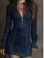 Femmes Mini Robe Robe Portefeuille Robe occidentale Robe en faux daim Élégant Mode Moderne Extérieur Vacances Soirée Coupe régulière Uni manche longue Col en V Bleu Printemps Automne