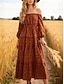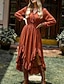 Femmes Robe Midi Robe bohème Robe occidentale Mode Moderne Extérieur Vacances Fête Coupe régulière Uni manche longue Col en V Orange Été