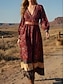 Femmes Robe Midi Robe bohème Robe occidentale Mode Moderne Extérieur Fête Sortir Coupe régulière Uni manche longue Col en V Bordeaux Été