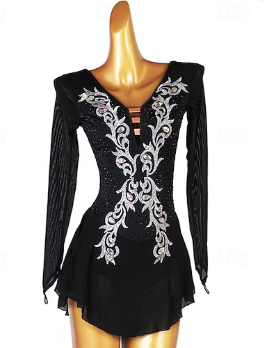 Danse latine Robe Cristaux / Stras Femme Utilisation Usage quotidien manche longue Spandex