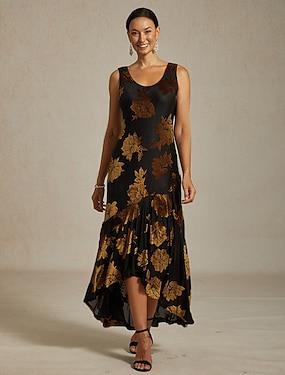 Femmes Robe maxi Robe à Volants Élégant Soirée Mariage robe demoiselle d honneur Superposé Coupe régulière Fleuri Sans manches Col en U Rouge