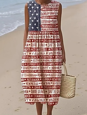Robe maxi patriotique pour la Journée de l'Indépendance pour femmes robe en A décolleté dénudé vacances décontractée soirée rue coupe régulière graphique drapeau sans manches encolure carrée encolure