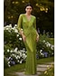 Sirène / Trompette Longueur au sol Robe de Soirée Élégant Scintillant Style Célébrité Manche 3/4 Col en V Formel Mariage Pailleté avec Paillettes Froncé