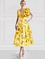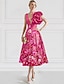 Ligne A Longueur cheville Robes de Cocktail Robes de soirée Élégant ancien Demi Manches Col en V Formel Mariage Nylon avec Imprimé floral Fente Poche