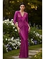 Fourreau / Colonne Traîne Balayage Robe de Soirée Robe de bal avec surjupe Tenue de soirée Élégant Demi Manches Col en V Formel Satin avec Plis Froncé Cristaux