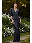 Ligne A Longueur au sol Robe de Soirée Tenue de soirée Élégant Soyeux Manche 3/4 Col en V Formel Mariage Poche Satin Extensible avec Noeud(s)