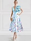 Sirène / Trompette Longueur au sol Robe de Soirée Élégant Soyeux Manche Courte Reine Anne Formel Mariage Poche Nylon avec Imprimé floral