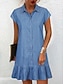 Femmes Mini robe Robe Décontractée Robe trapèze Robe en faux denim Mode Basique Quotidien Extérieur Vacances Coupe régulière Uni Manche Courte Col de chemise Bleu Noir Été Printemps