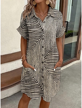 Femmes Mini Robe Robe Chemise Robe Décontractée Robe Imprimée Mode Moderne Quotidien Plage Week-end Coupe régulière Géométrique Manche Courte Col de chemise Kaki Été Printemps Automne