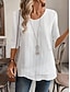Femmes Surdimensionné T-shirt Patchwork Superposé Couleur Unie Élégant Occasionnel Demi Manches Col en V Hauts Longs Quotidien Sortir Noir Blanche Rose Claire Vin Bleu Roi Été Printemps