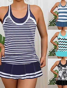 Femmes Maillots de Bain Tankini 2 pièces Jupe Maillot de bain Élégant Vacances Graphique Tropical Col en V Sans manches Maillots de bain